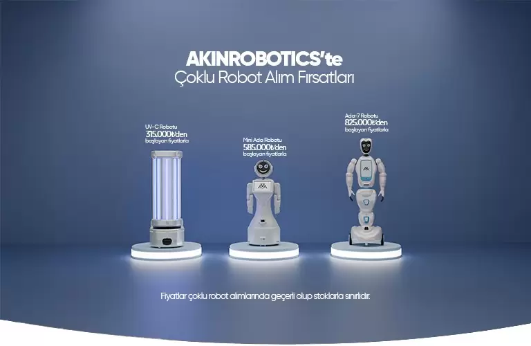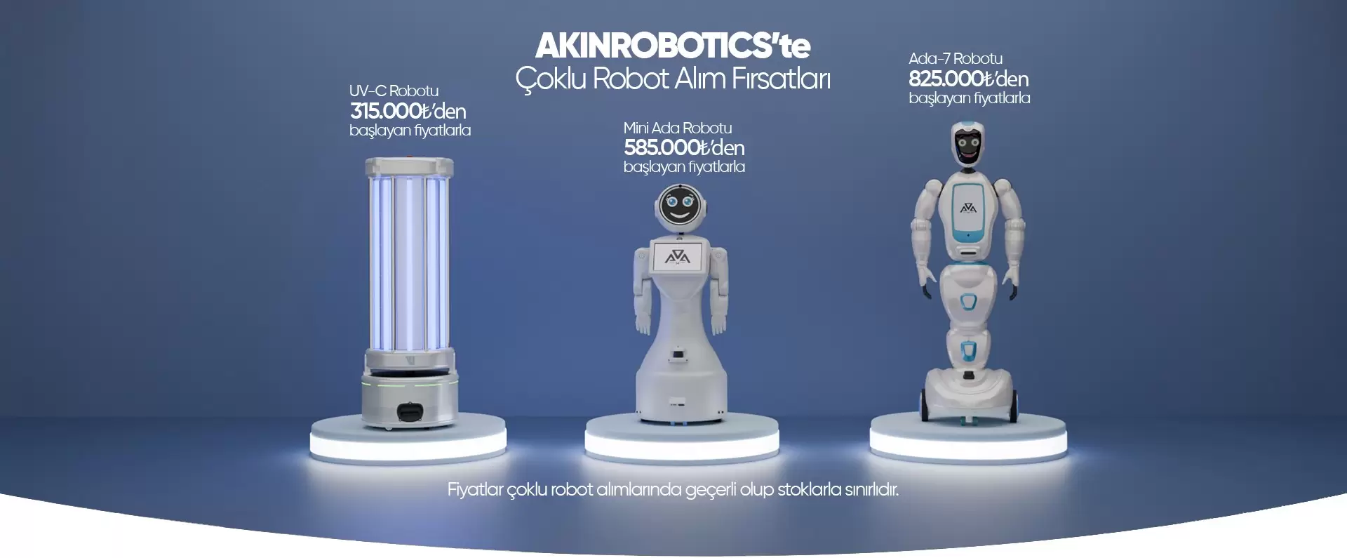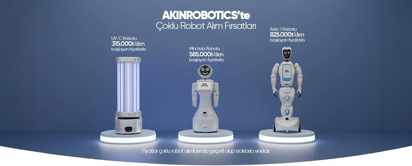 Teknolojinin hızla geliştiği dünyada Sosyal Robotlar hizmet sektöründe birçok alanda görev almaktadır. AKINROBOTICS tarafından üretilen Mini ADA Robot; turizm, sağlık, eğitim, hızlı tüketim başta olmak üzere birçok sektörde sorunsuz ve eğlenceli hizmet verebilmektedir. Yazılım ve robot arayüz çalışmaları da AKINROBOTICS çatısı altında geliştirilen Mini ADA Robot; işinizi geliştirmek, fark yaratmak, müşterilerinize farklı çözümler sunarak daha hızlı, daha keyifli, daha yenilikçi hizmet vermek için sizleri bekliyor.