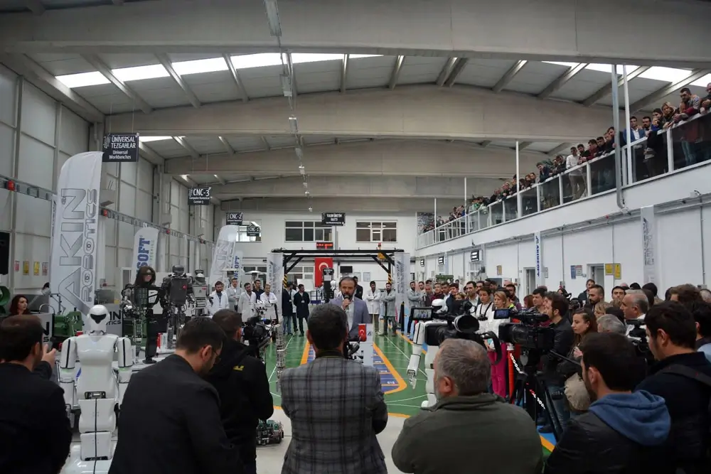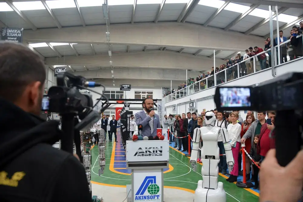 Türk insanının bilime, gelişen teknolojiye ve bilimsel düşünceye ilgisini arttırmak ve aynı zamanda robotik teknolojiler alanında yapılan çalışmalarla ülkemizi ilk sıralara taşımak için, üstün hizmet kalite anlayışını benimseyerek çalışmalarına devam eden ilk insansı robot fabrikası olan AKINROBOTICS Robot Fabrikası'nın açılış görsellerine sayfa içerisinden ulaşabilirsiniz.
