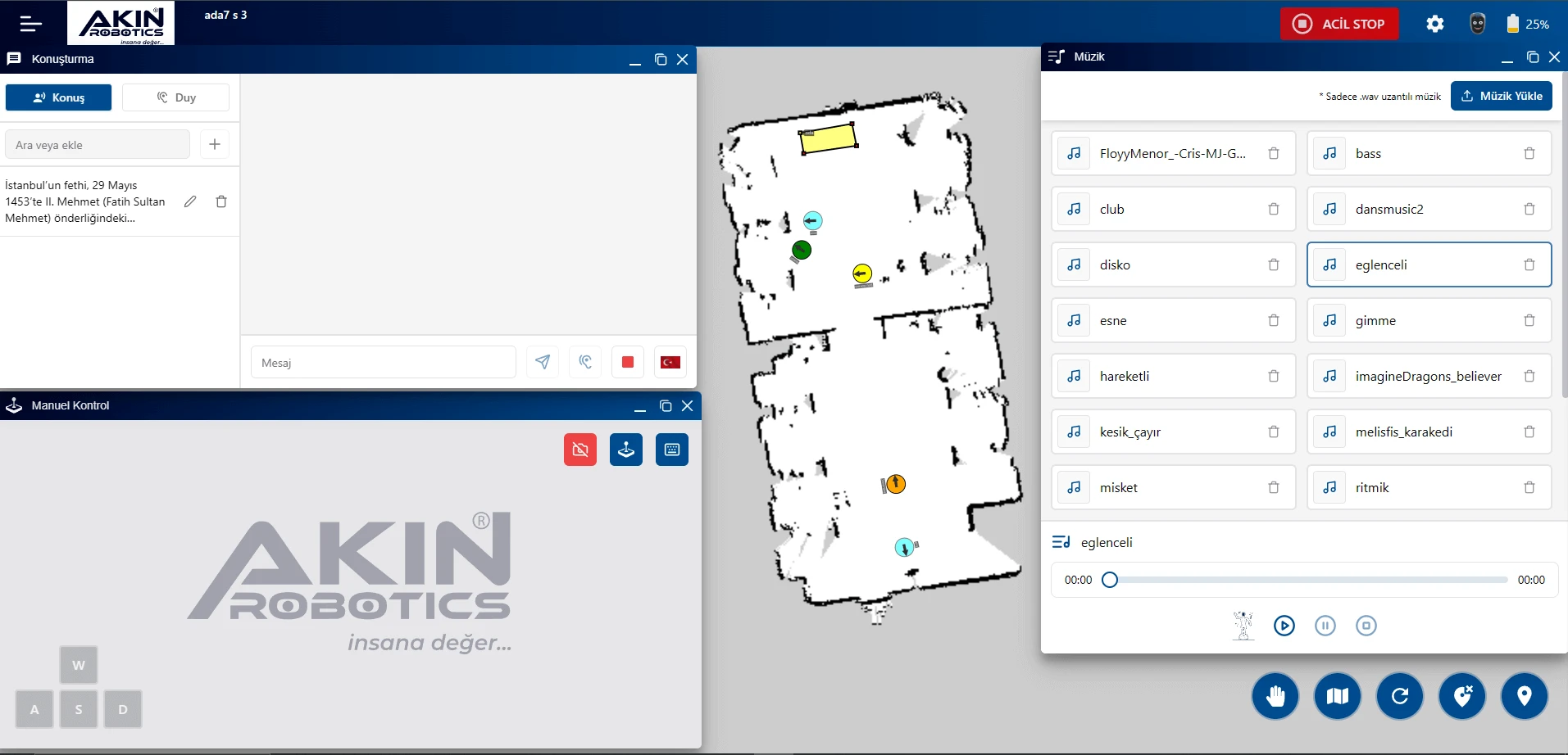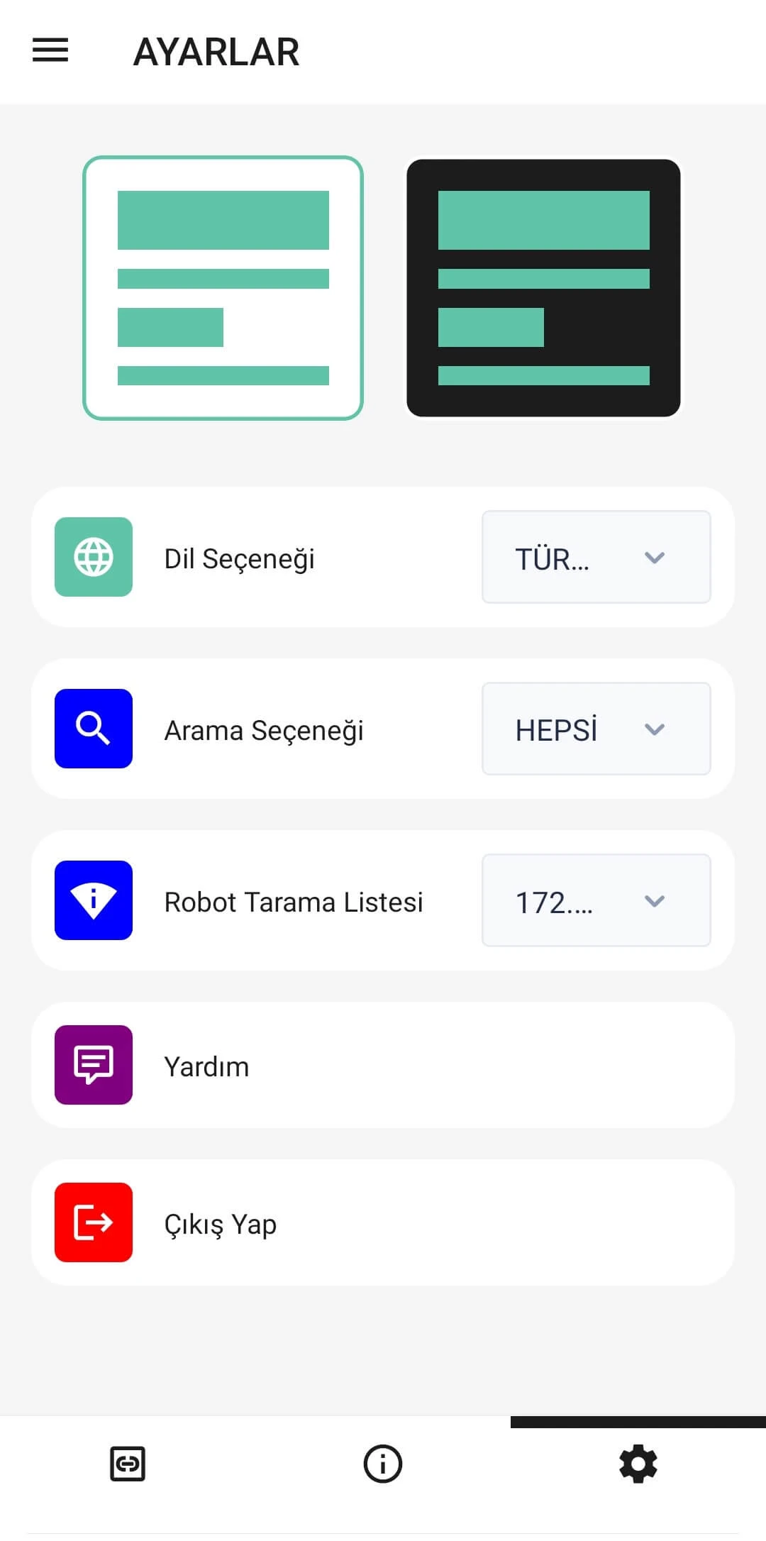 The Ar-Mobile application, developed by AKINROBOTICS, allows you to connect to the advanced control interface of robots via mobile devices. With the Ar-Mobile application, you can access the robot’s cameras, microphone, and mapping system. It also allows you to view and modify the status of all the robot’s systems. Moreover, this interface enables you to move the robot, control its joints, and make the robot speak. The Ar-Mobile application provides full control of the robot.