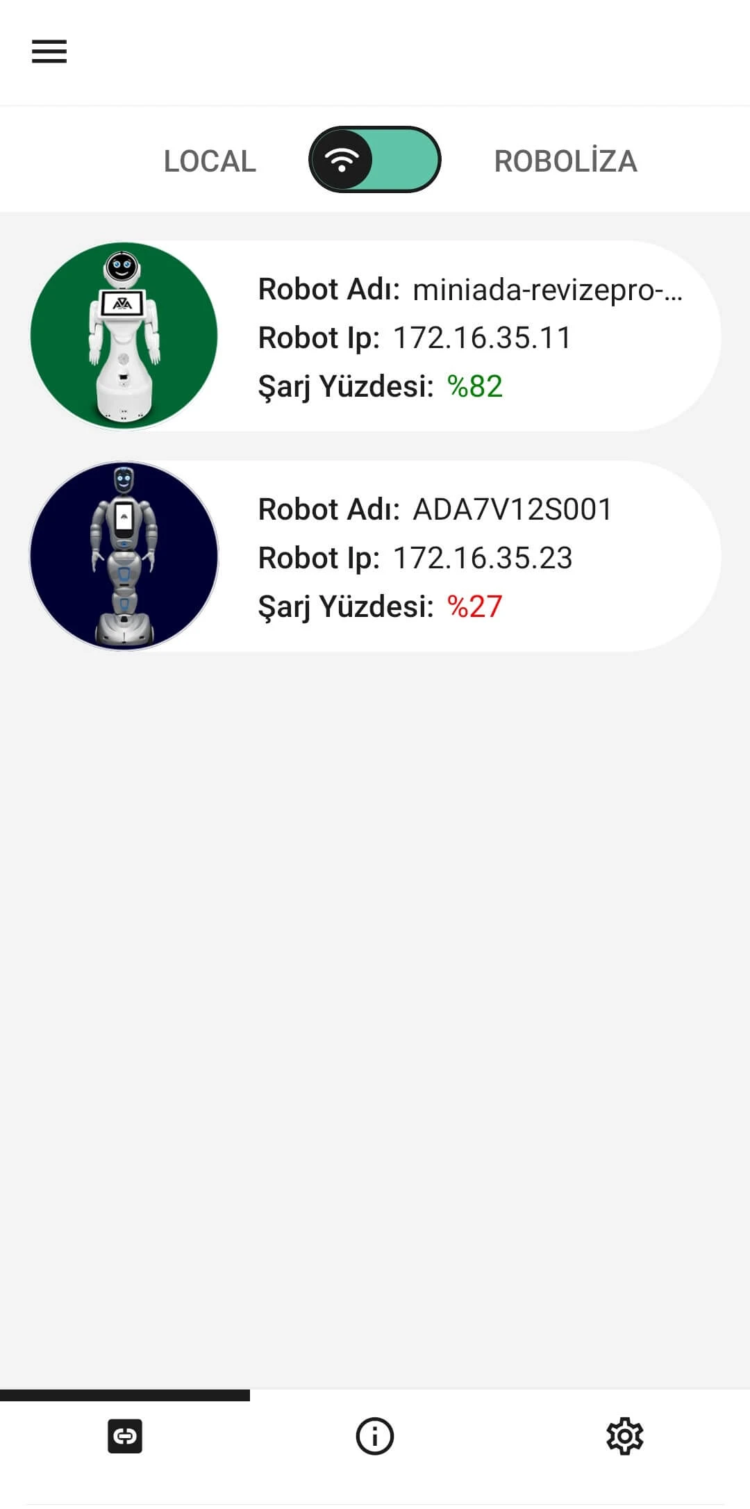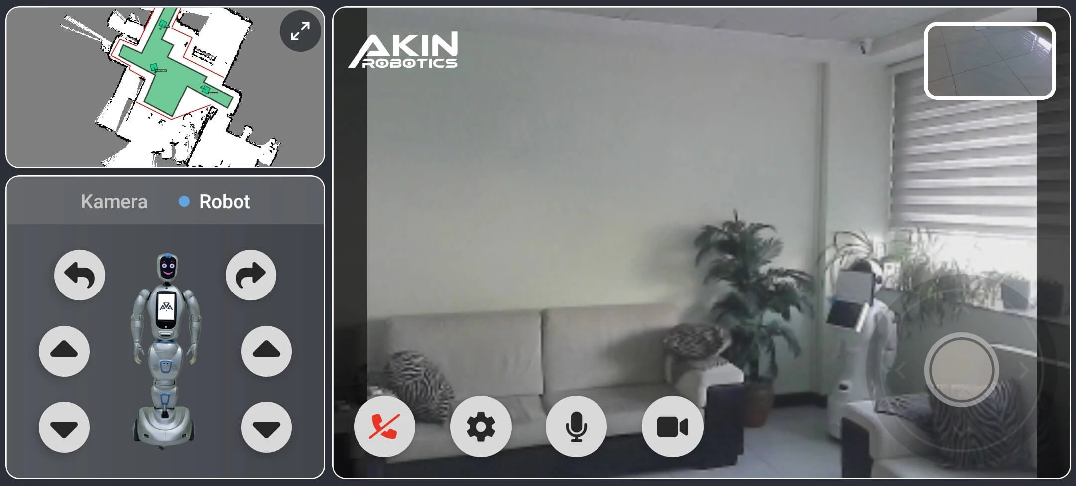 Developed by AKINROBOTICS, the Boss Mobile application allows remote connection to the robot via mobile devices and enables video calls through the robot. With the Boss Mobile application, you can access the robot's cameras and microphone, and the user can also transfer their own image and voice to the robot. The Boss Mobile application allows you to move the robot and control its joints. Thanks to the lidars on the robot, obstacles around the robot can be seen on the Boss Mobile application, and you can also access the robot's mapping system. This ensures a more controlled and safe experience for the user.