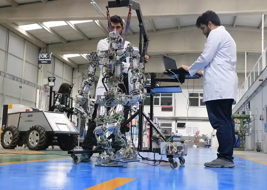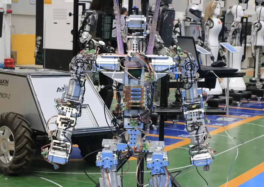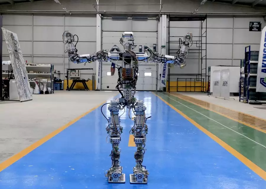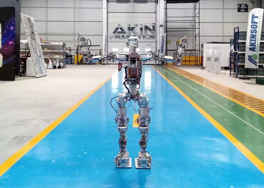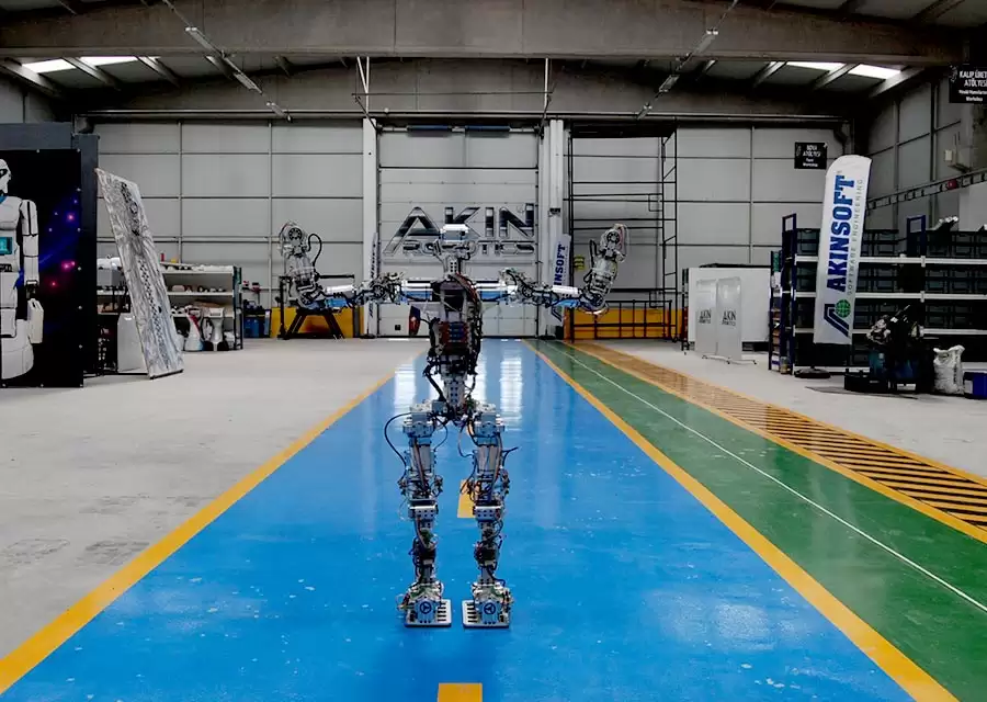 AKINCI, produced with high technology by AKINROBOTICS, is the first humanoid robot prototype in Turkiye. It is a project that started in 2009 with R&D studies. AKINCI-4, the fifth prototype of the project, can exhibit human-like features such as moving its fingers, arm joints, and facial expressions. It also has the ability to walk thanks to its legs. With a total weight of 48 kilograms and a height of 150 centimeters, AKINCI-4 can actively serve for 5 hours. It has the ability to maintain its balance by responding instantly to external forces (pushing, obstacles on the road, ramps, etc.) during walking thanks to its balance sensor, depth perception with stereo vision camera, reaching the target point by determining its direction while walking, notifying dangerous situations thanks to its odor sensor, and determining the direction thanks to its sensors. With its 6 axis 2 arms, it can perform almost all the movements that the human arm can do, with its 6 axis 2 legs, it can walk, change direction, climb stairs, grasp objects with its 5-finger ergonomic design, and perform facial expressions with its 12-axis face motors. AKINCI-4, which is aimed to take part in areas where human labor is intensively used such as warehouses, production facilities, and mines, continues its work in this direction. You can access AKINCI visuals from within the page.
