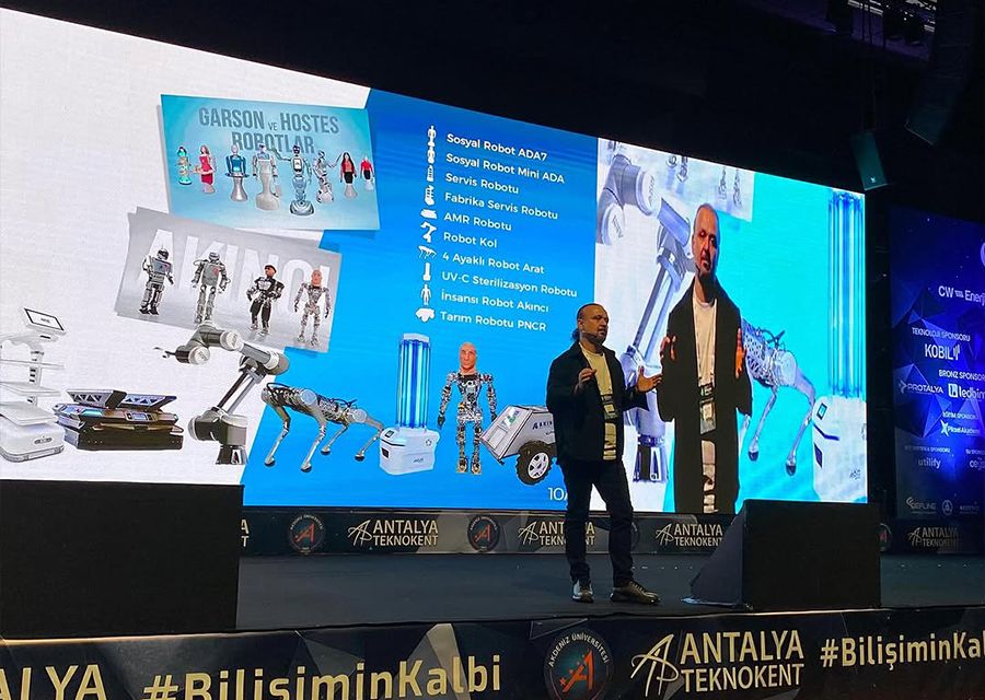 On Friday, December 6, AKINROBOTICS took part in the 8th Mediterranean Informatics Summit held at the Antalya Mimar Sinan Congress Center, featuring its robots Arat, Mini Ada, Ada-7, and Service Robots.