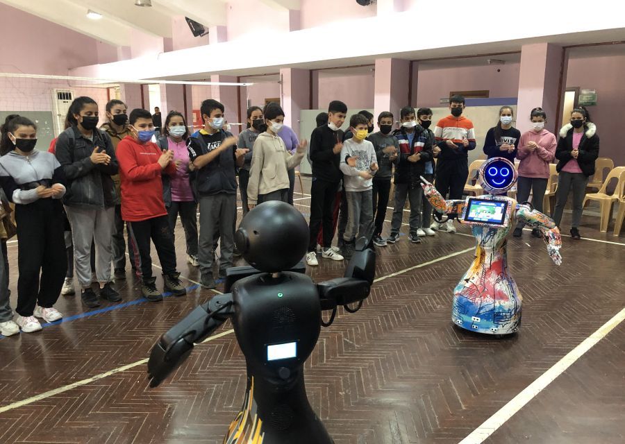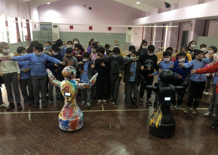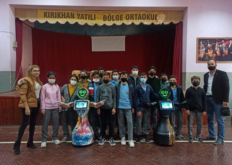Mini Ada met with children at the "Mini Ada Robot at My School" event held at Kırıkhan Regional Boarding Middle School. Children played games and danced with Mini Ada, having a unique and fun day.