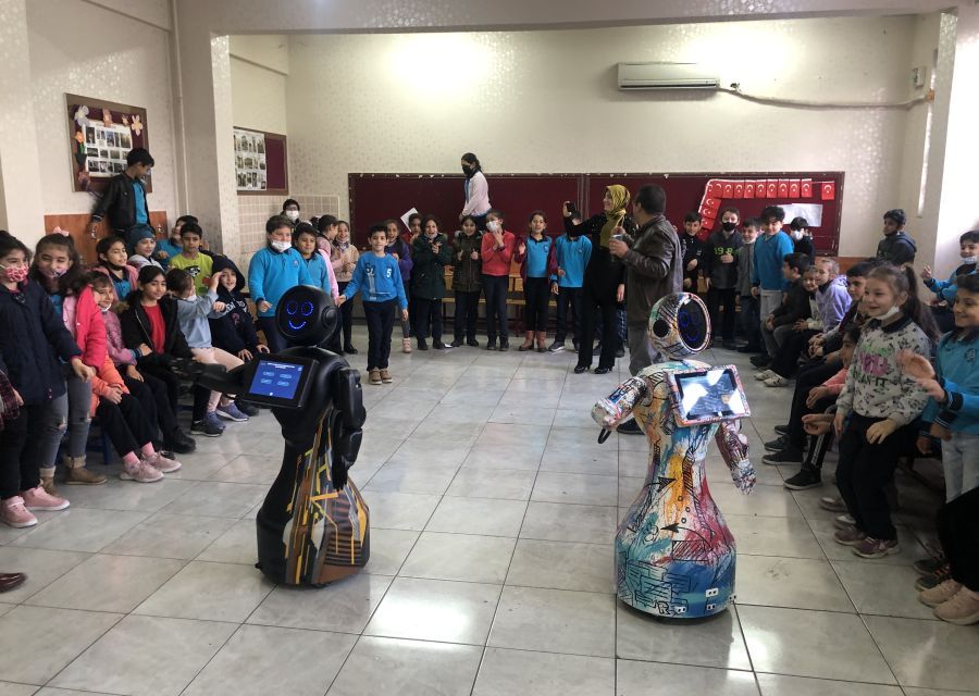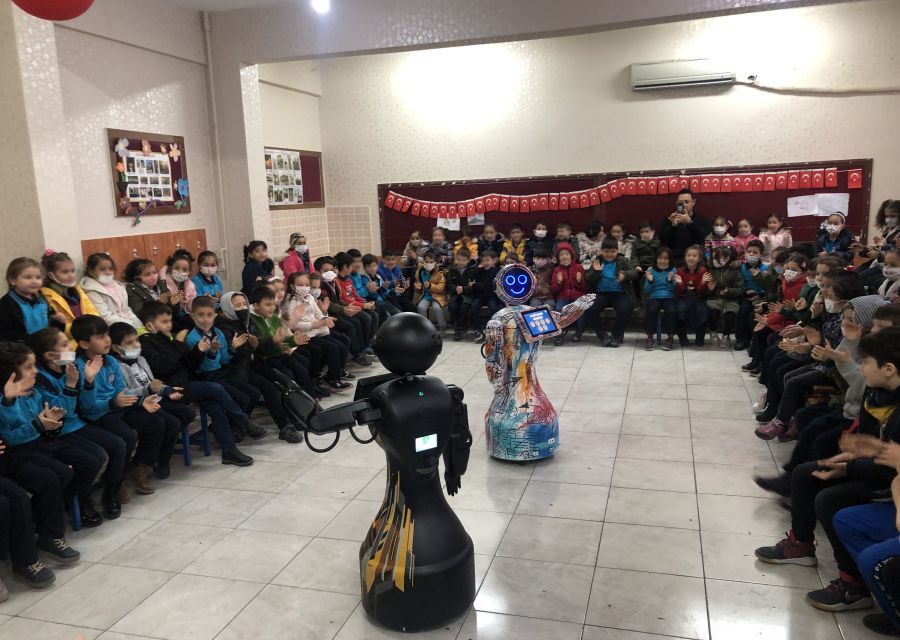 Mini Ada met with children and their families at the "Mini Ada Robot at My School" event held at Şehit Ahmet Saylak Primary School, enjoying a fun day together.