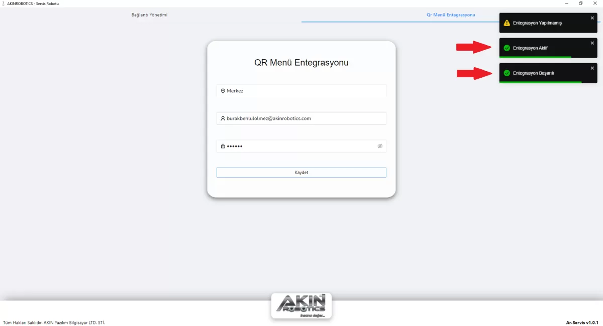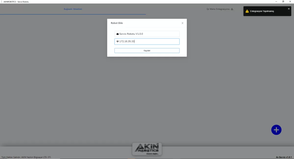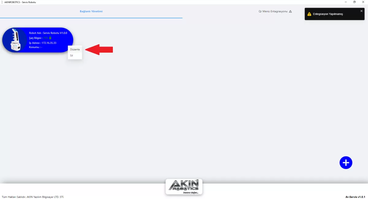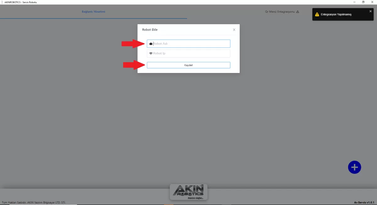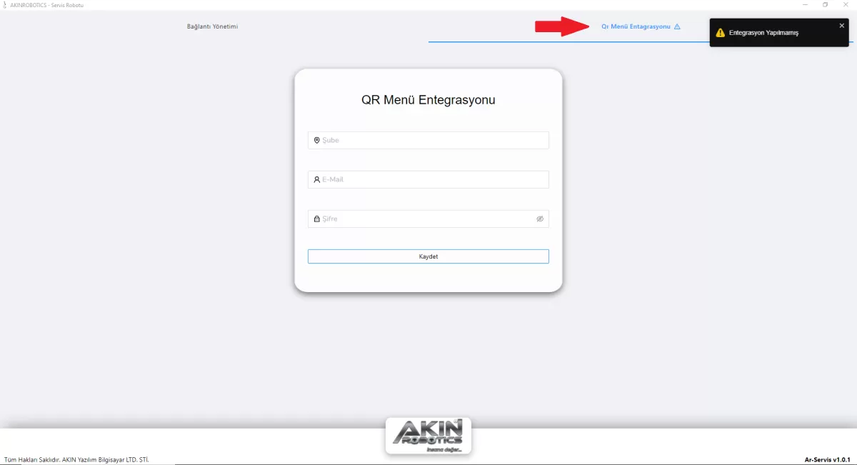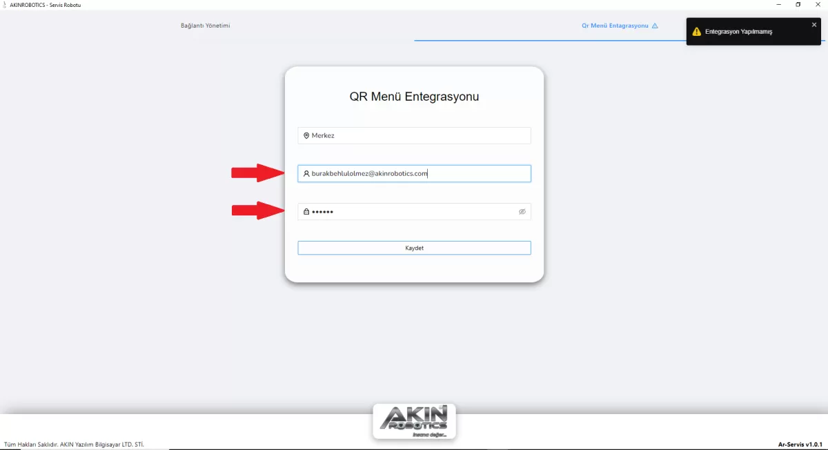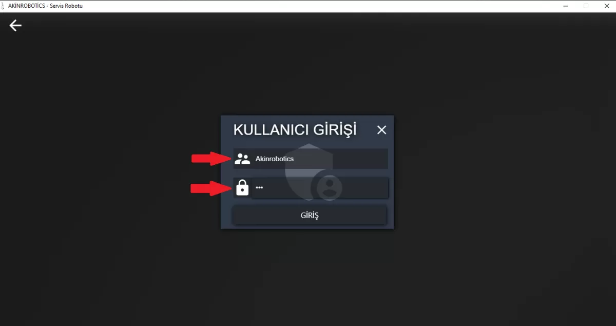 Login to the AR-Service application with the username and password given to you by Akınrobotics.