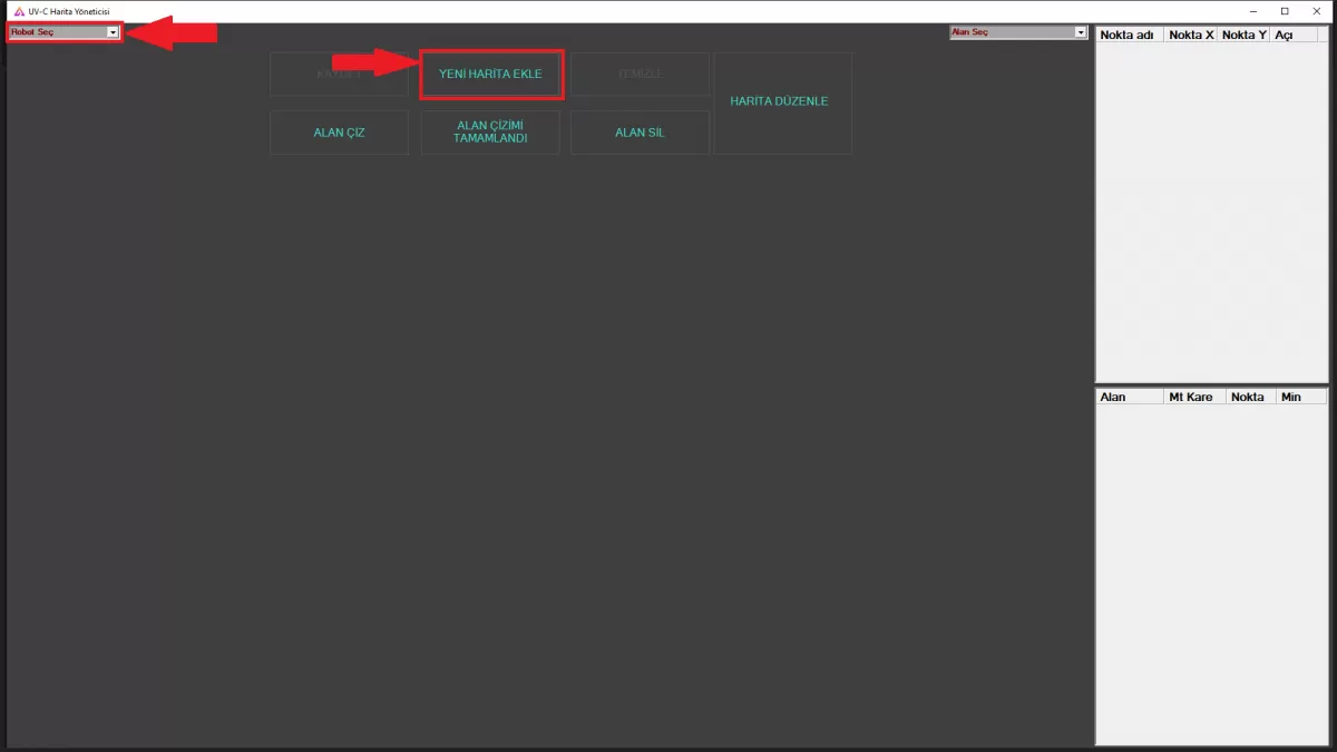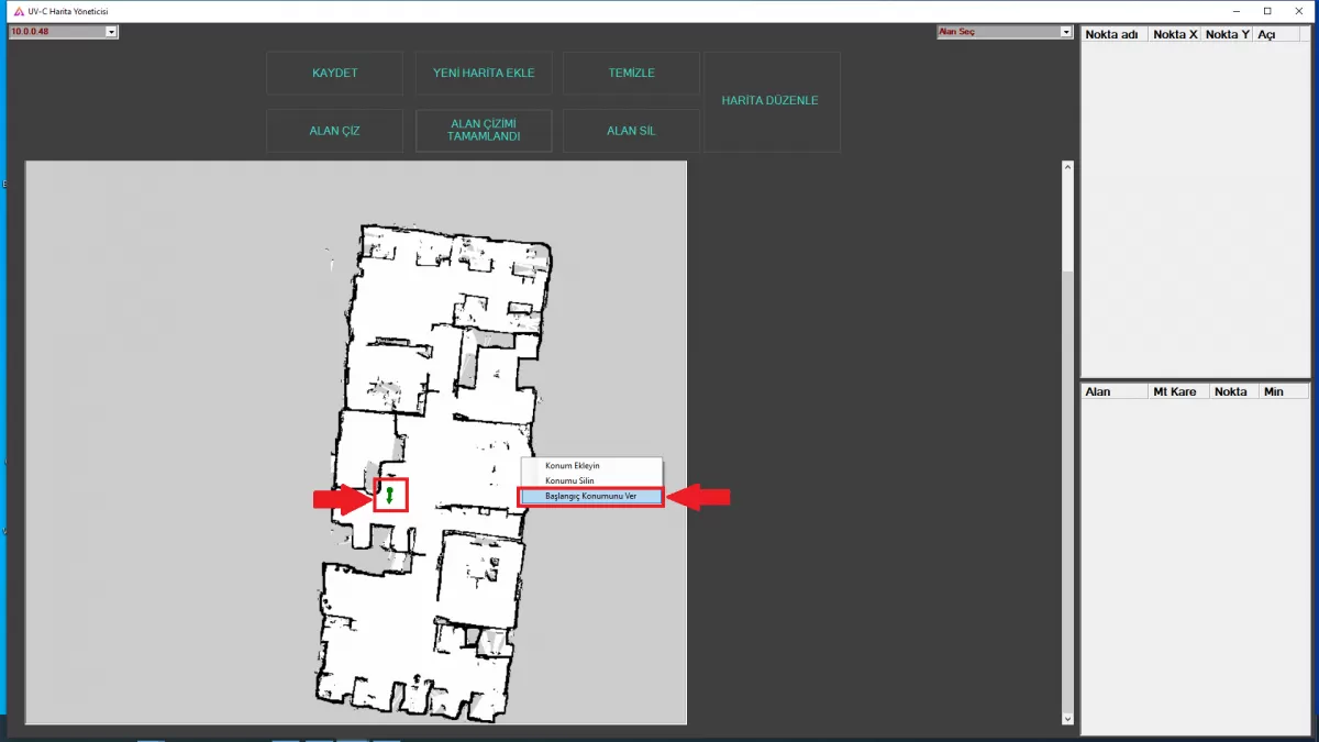 Step-3: In order for the robot to perform the sterilization process, you must first determine a "Start Position". To do this, click on the “Give Start Position” button. Give its position with the mouse.