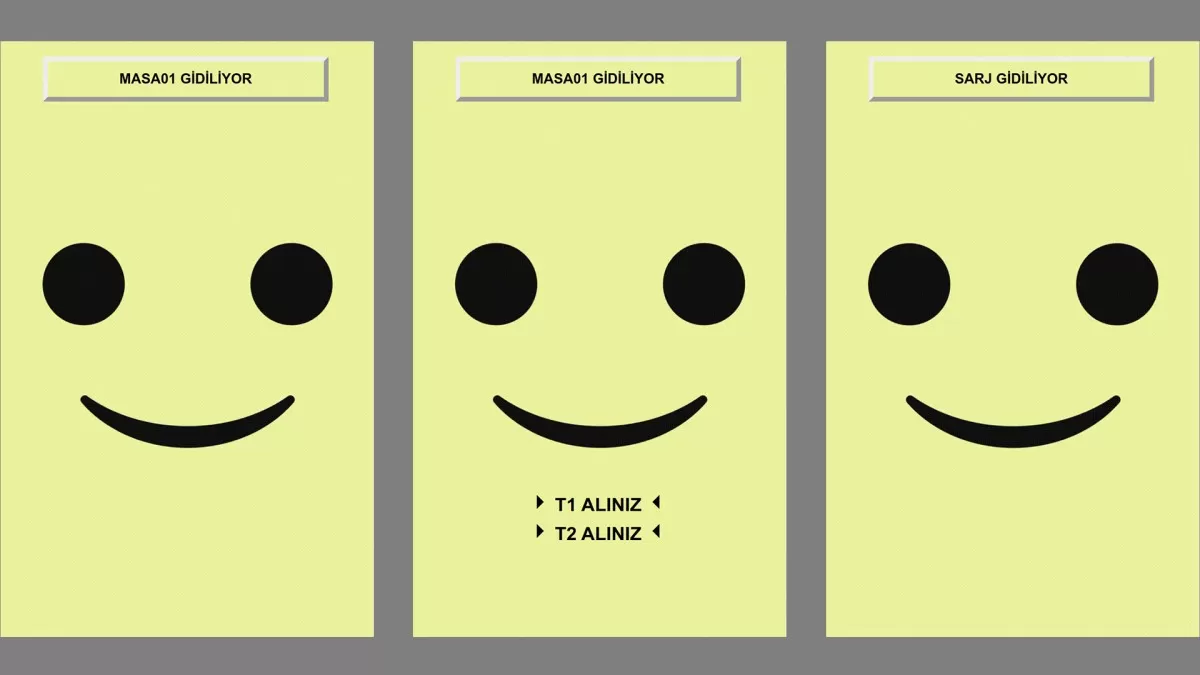 While your robot is sending your orders to the tables, the processing steps that appear on the screen will be as follows;