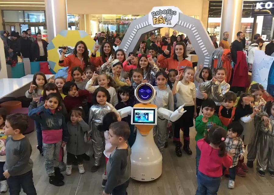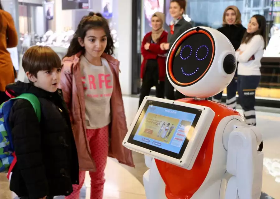 Mini ADA 3, whose production, software and robot interface studies were developed by AKINROBOTICS, is taking its place in everyday life. It can operate in various areas such as airports, bus stations, hotels, shopping malls, stores, educational institutions, fairs, concerts, openings, and celebration events. Mini ADA can welcome your team members and guests, provide information, and create a difference by engaging in mutual dialogue with its facial recognition feature. It can perform all these tasks with its multi-language option. By introducing your business or the area where Mini Ada will be deployed to the robot, you can quickly perform many tasks such as providing directions, floor and office information, accompanying users, and displaying integration options on its front screen. Additionally, you can present legal and security-related warnings that need to be complied with internally through both voice and front screen visuals. It can fetch real-time weather, exchange rates, time-date information, etc., from the Internet and convey it to the user verbally or in writing. Through the front screen of our robot, you can conduct remote discussions, control the robot, and have long-distance conversations. In the education sector, Mini Ada can establish voice dialogues and support them with visuals on its front screen. You can instruct Mini Ada to project and present your presentations through voice commands, enhancing attention and awareness with attention-grabbing educational elements. With its barcode reader and facial recognition system, it can read tickets, barcodes, and invitations and use them for entry-exit control and data recording. By integrating with your ERP system, you can use it for stock control, counting processes, and process tracking. By performing dances and figures according to the given choreography, you can entertain your customers or guests at concerts, events, fairs, etc., with interesting shows. With its selfie-taking feature, you can immortalize special days and events with your customers and visitors and direct them to the desired email address. You can access Mini ADA visuals from the page.