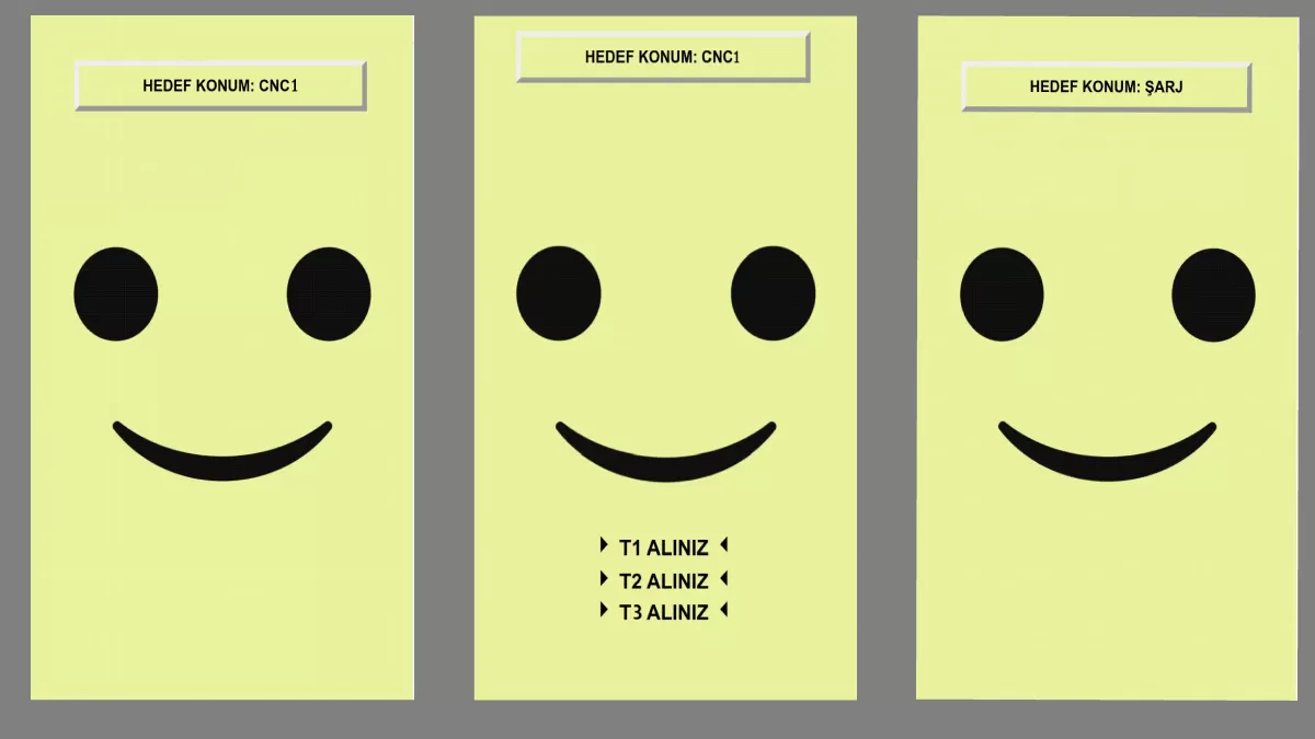 Robotunuz siparişlerinizi masalara iletirken, ekranında görünen işlem adımları sırası ile aşağıdaki gibi olacaktır;
