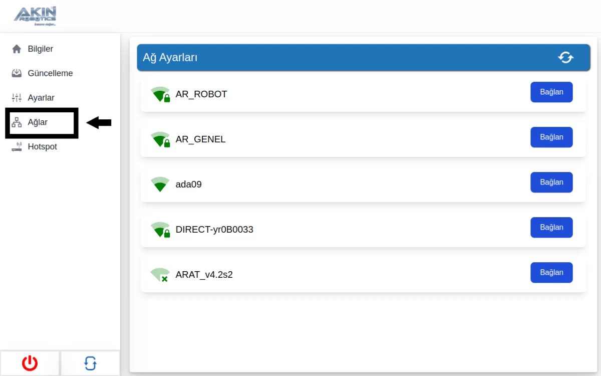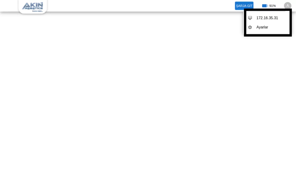 Ayarlar butonuna tıklandığında sizleri 'ayarlar giriş' sayfası karşılayacaktır. AKINROBOTICS tarafından size iletilen kullanıcı adı ve şifreniz ile 'Ayarlar' sayfasına giriş yapabilirsiniz.