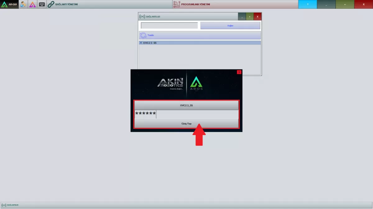 Adım-1: Ar-GUI programını çalıştırınız. Tekrar robot bağlantınızı yaptıktan sonra “PROGRAM” butonuna tıklayın.
